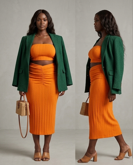 3 450 FCFAMa chérie, voici l'ensemble qui va te transformer en véritable star. C’est le mélange parfait entre la douceur et le peps. Le haut est un Crop Top sans manches qui dégage bien tes bras, et le bas est une jupe longue avec une fente audacieuse qui laisse entrevoir tes jambes quand tu marches. Que tu choisisses le rose bonbon pour un côté sucré ou l’orange vif pour briller comme le soleil, tu seras la femme la plus "dosée" de ton entourage. C'est la tenue des femmes qui aiment qu'on admire leur élégance.