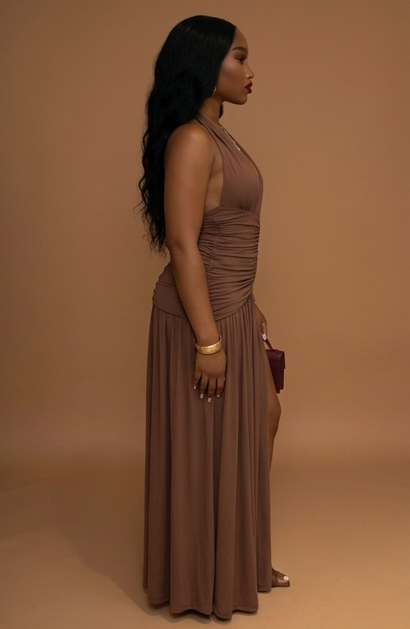 4 750 FCFAMa chérie, avec cette robe, tu ne marches pas, tu floates ! C’est la tenue des grandes dames, de celles qui savent qu’elles sont la "pépite" de la soirée. Sa couleur marron chocolat est d'une élégance rare qui se fond magnifiquement avec le teint des femmes africaines. Le décolleté plongeant en V et la fente audacieuse sur la jambe apportent ce côté sexy et sûr de soi que tout le monde va admirer. Quand tu portes cette robe, on sent directement que tu es une femme de valeur.