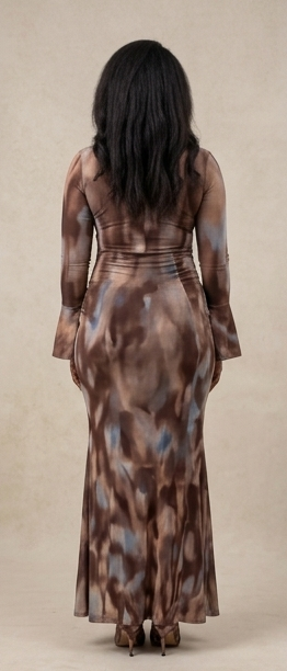 IND-036 Robe Longue Effet Soie & Manches Évasées